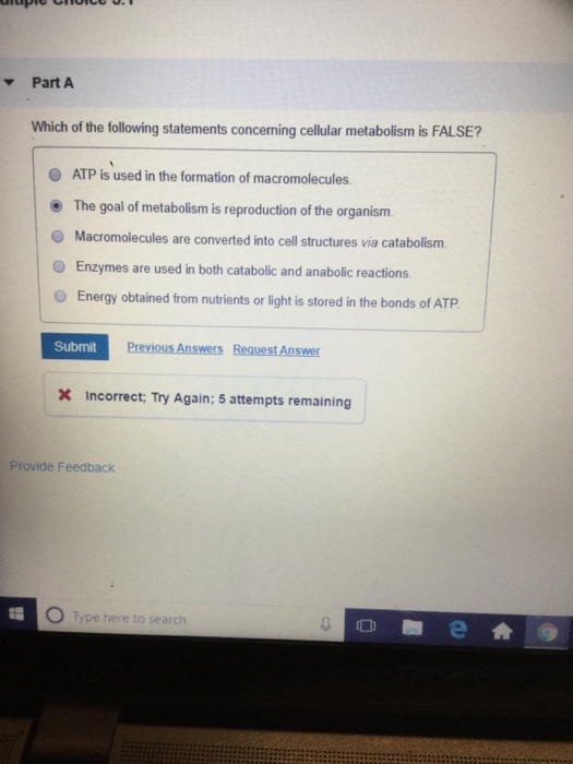Question 1 point 1st attempt Which of the following statements about energy metabolism is FALSE. Which of the following statements concerning cellular metabolism is false. Mitochondria Which of the following statements about mitochondria is false.